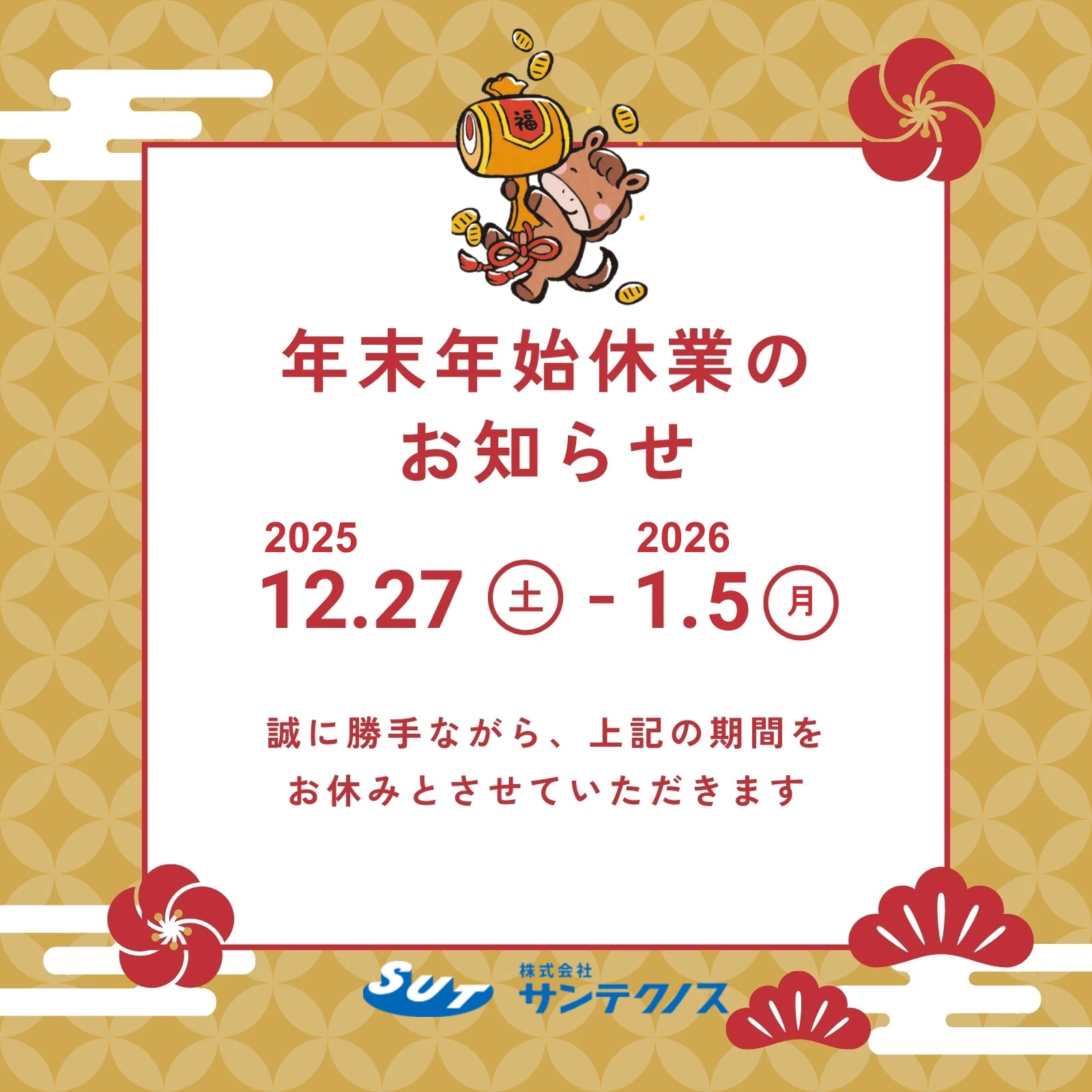 年末年始2026 | 株式会社サンテクノス | IT・レントゲン調査・赤外線調査・非破壊検査・超音波検査